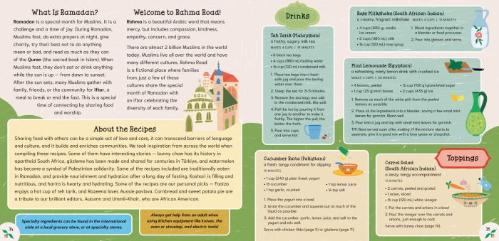 Travel to the houses of Rahma Road to see what everyone is cooking for the annual potluck iftar. A kid-friendly recipe book!